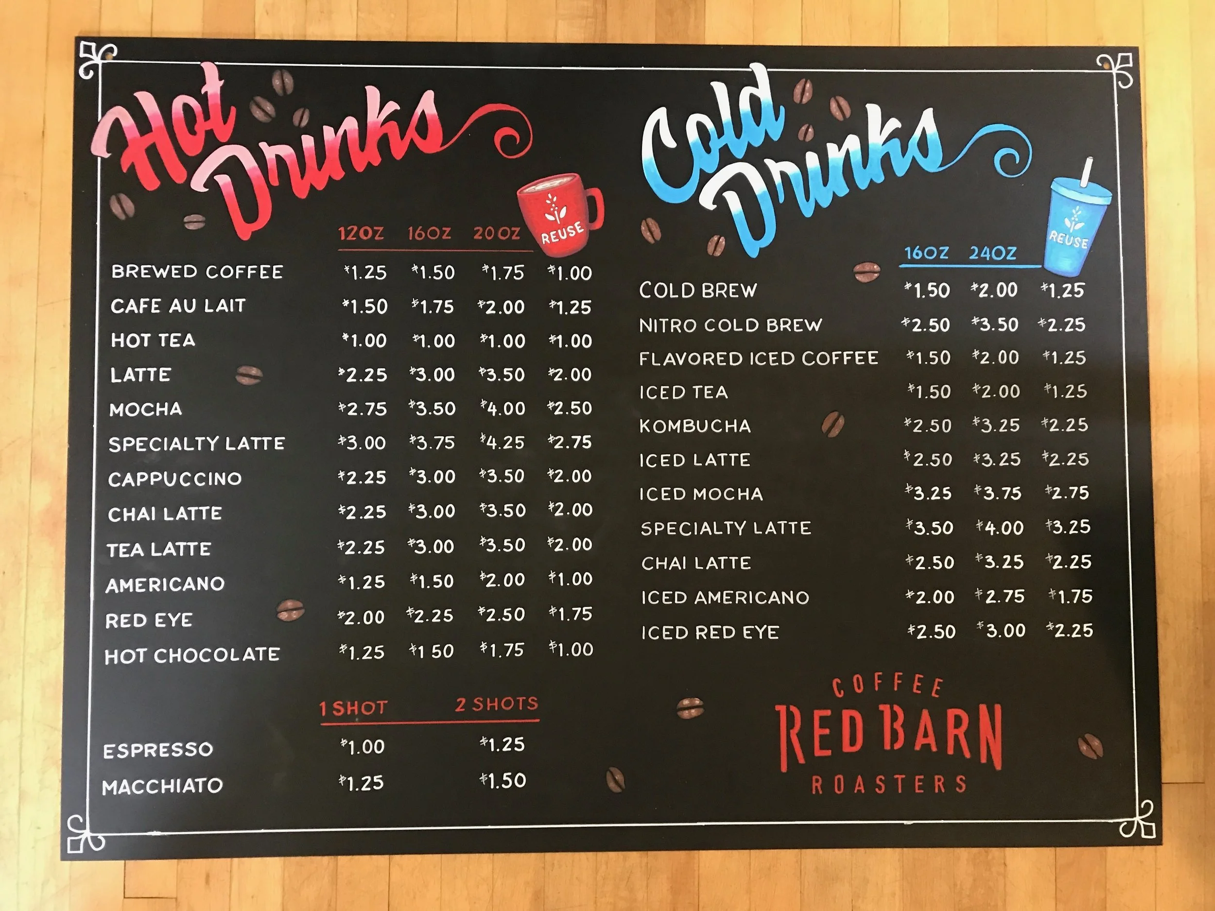 Red Barn Cafe Daily Roasts Board